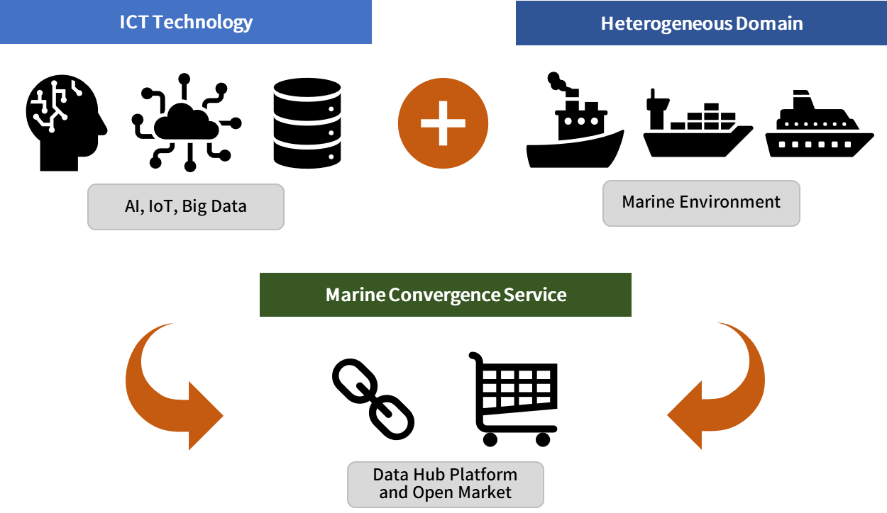 Ships are constantly generating information through a variety of sensors and communication devices. Crew members aboard ships also generate key information about their safety through wearable healthcare devices. Insurers investigating accident histories, shipbuilders building vessels, and each country’s Meteorological Administrations are also important ecosystems for maritime data exchange. The raw data collected here is analyzed and reprocessed through the hub system and then transformed into advanced and insightful data. Data can be used to optimize routes for autonomous surface ships, provide safety services to ensure crew health, develop maritime-specific insurance products, improve ship hulls, and forecast maritime weather.